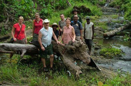 We are facing a number of challenges as we are here. The biggest for the both of us are the hikes through the bush we go on each week. We are situated on top of a mountain so every where we go means going down the side of the mountain than back up again. Between the heat and the mosquitoes it is very important to make good use of bug repellant and drink plenty of water. Next week we will be going on an all day hike and after that a three day hike. These hikes are helping us to get into better shape. Pictured here you will find Kevin & Gertrude with others on one of several hikes.